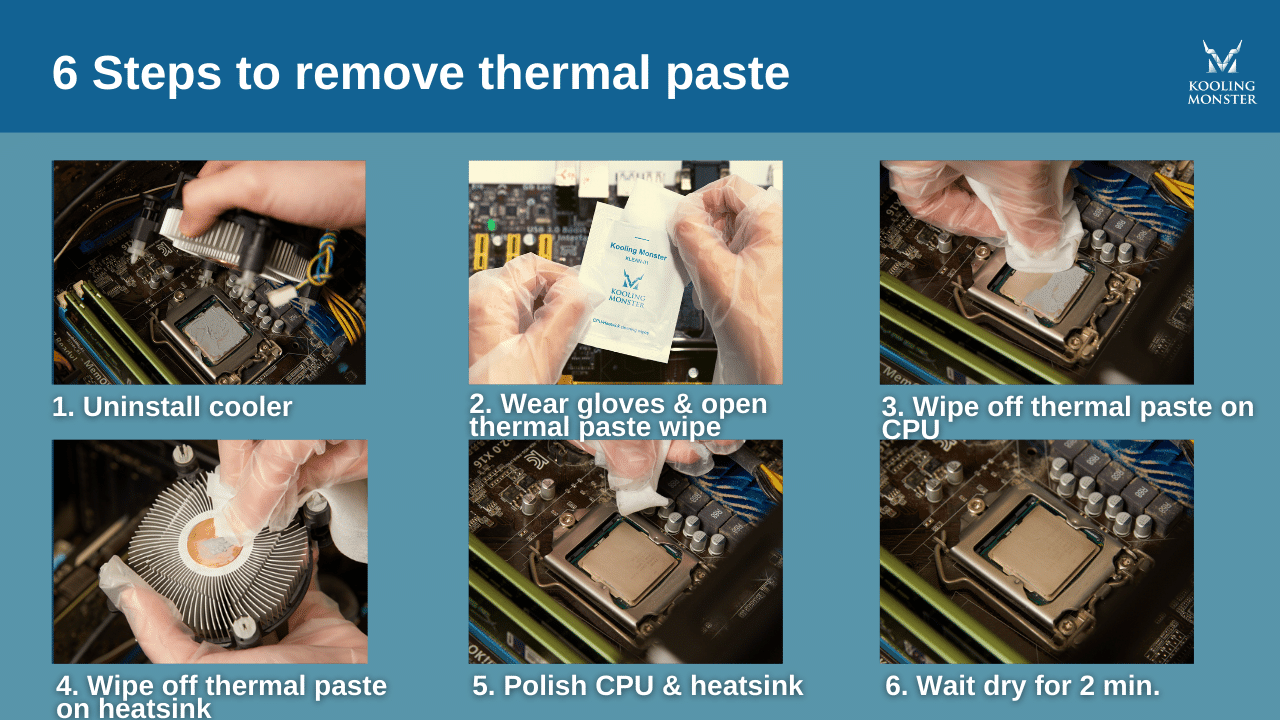 清 CPU 上的散熱膏,你可以用紙巾加異丙醇(91% 以上)—— 或省掉麻煩直接用 Kooling Monster KLEAN-01,我們專門設計的散熱膏清潔布,輕鬆擦掉散熱膏殘留。